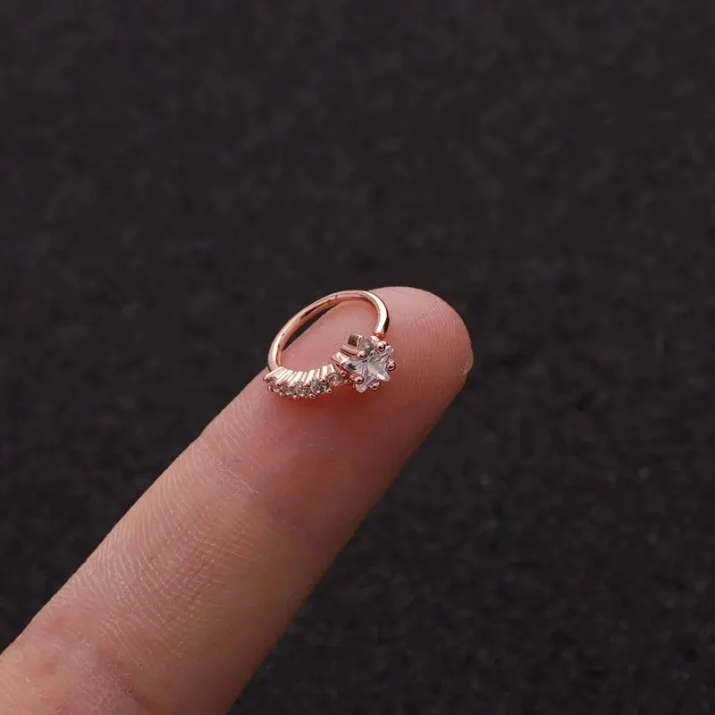 Brincos piercing adorável círculo redondo estrela coração quadrado zircônia
