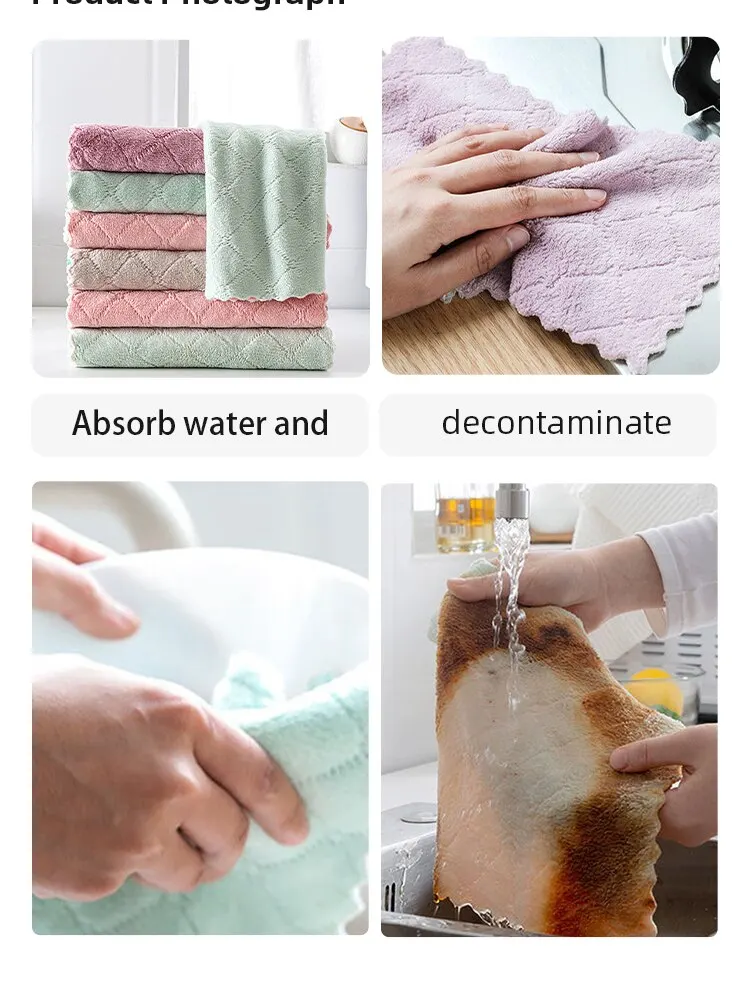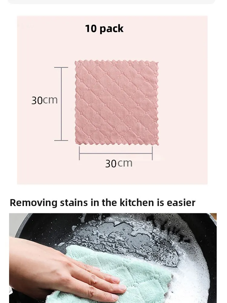 • Absorvente e antiaderente: O material de microfibra desses panos de limpeza os torna altamente absorventes e antiaderentes, tornando-os perfeitos para limpar respingos e sujeira na cozinha.