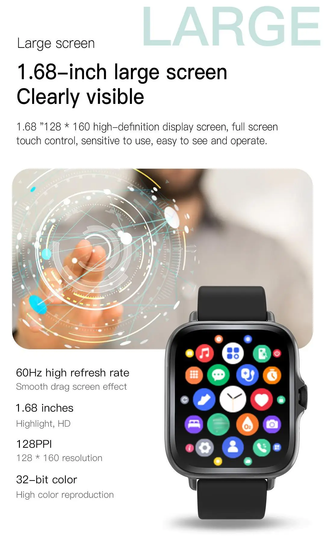 Tamanho da tela: 1,68 polegadas